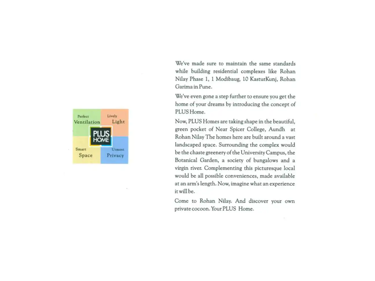 The 'no-neighbours' apartment complex. A concept unique to residential complexes built by Rohan Builders.