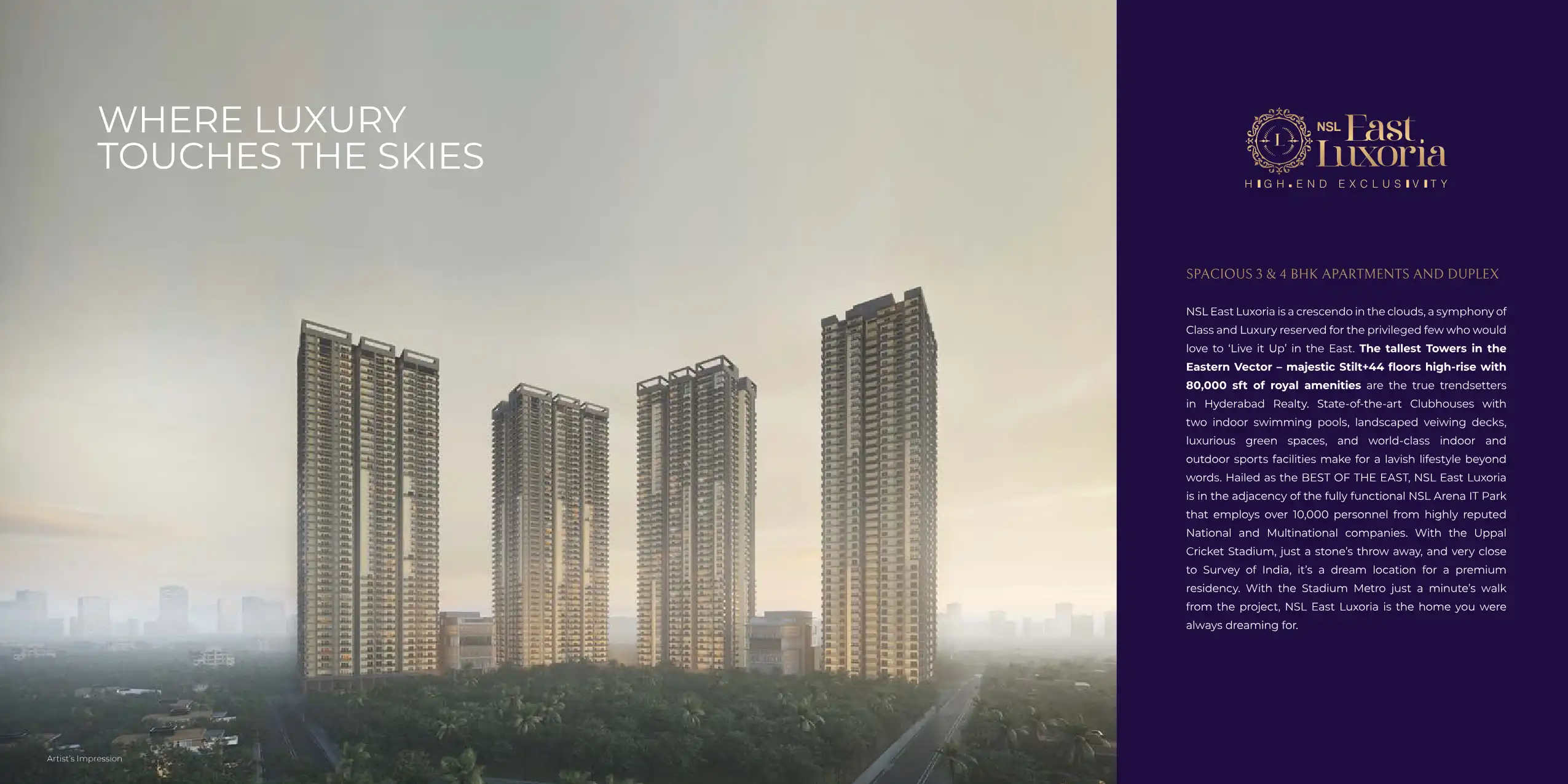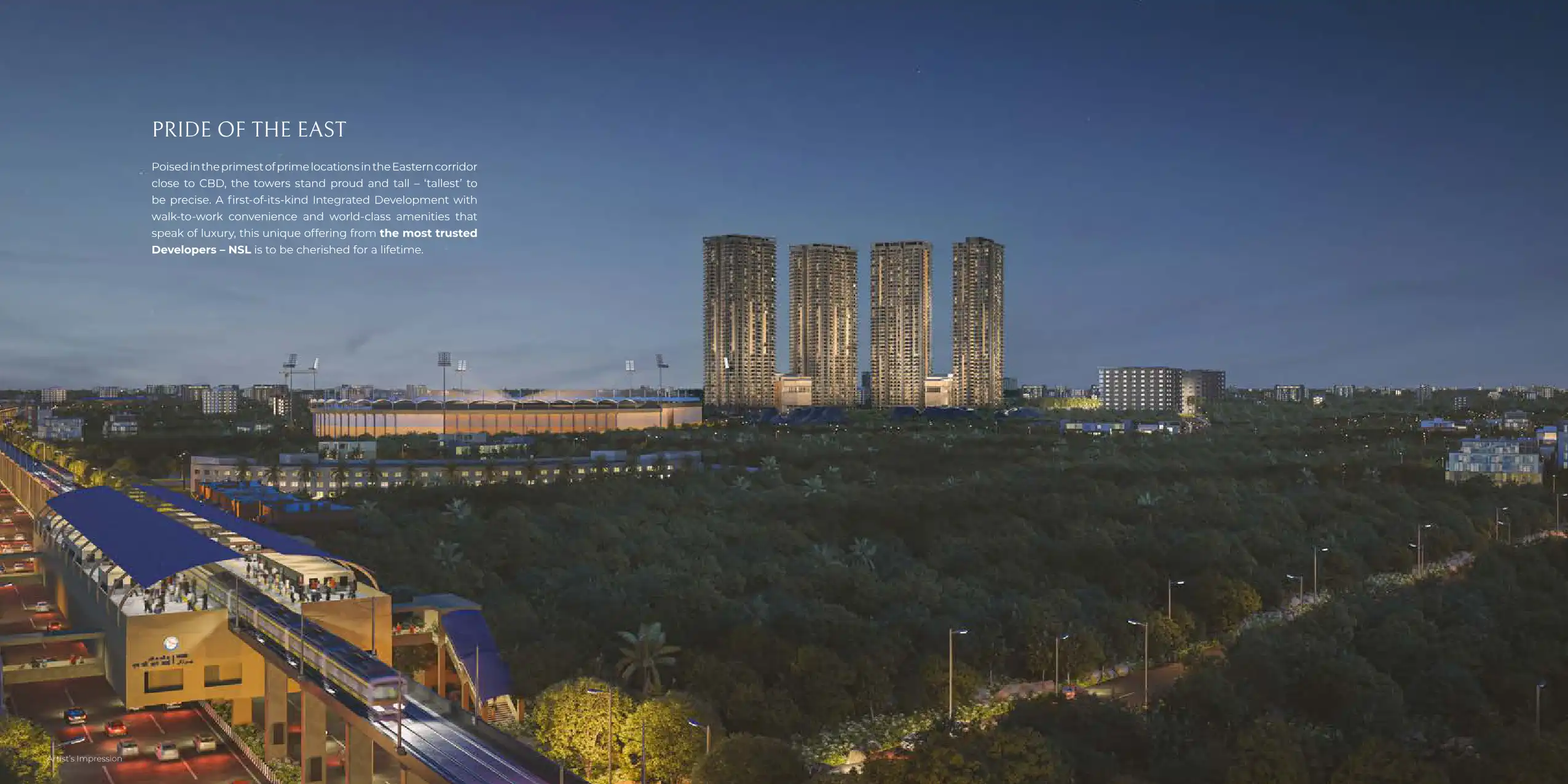 NSL East Luxoria is a crescendo in the clouds, a symphony of Class and Luxury reserved for the privileged few who would love to 'Live it Up' in the East. The tallest Towers in the Eastern Vector - majestic Stilt+44 floors high-rise with 80,000 sft of...