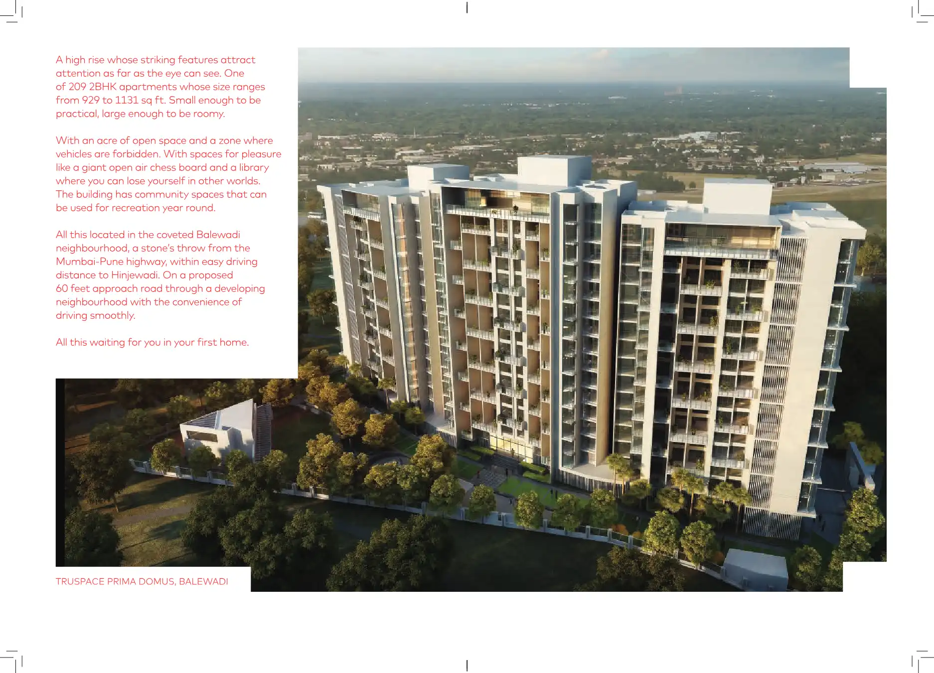 TruSpace Prima Domus has been designed to give you uninterrupted views and the sense of privacy that a couple setting up their first home needs. About half the flats face the green sweep of the garden while the other half faces an open space. Care ha...