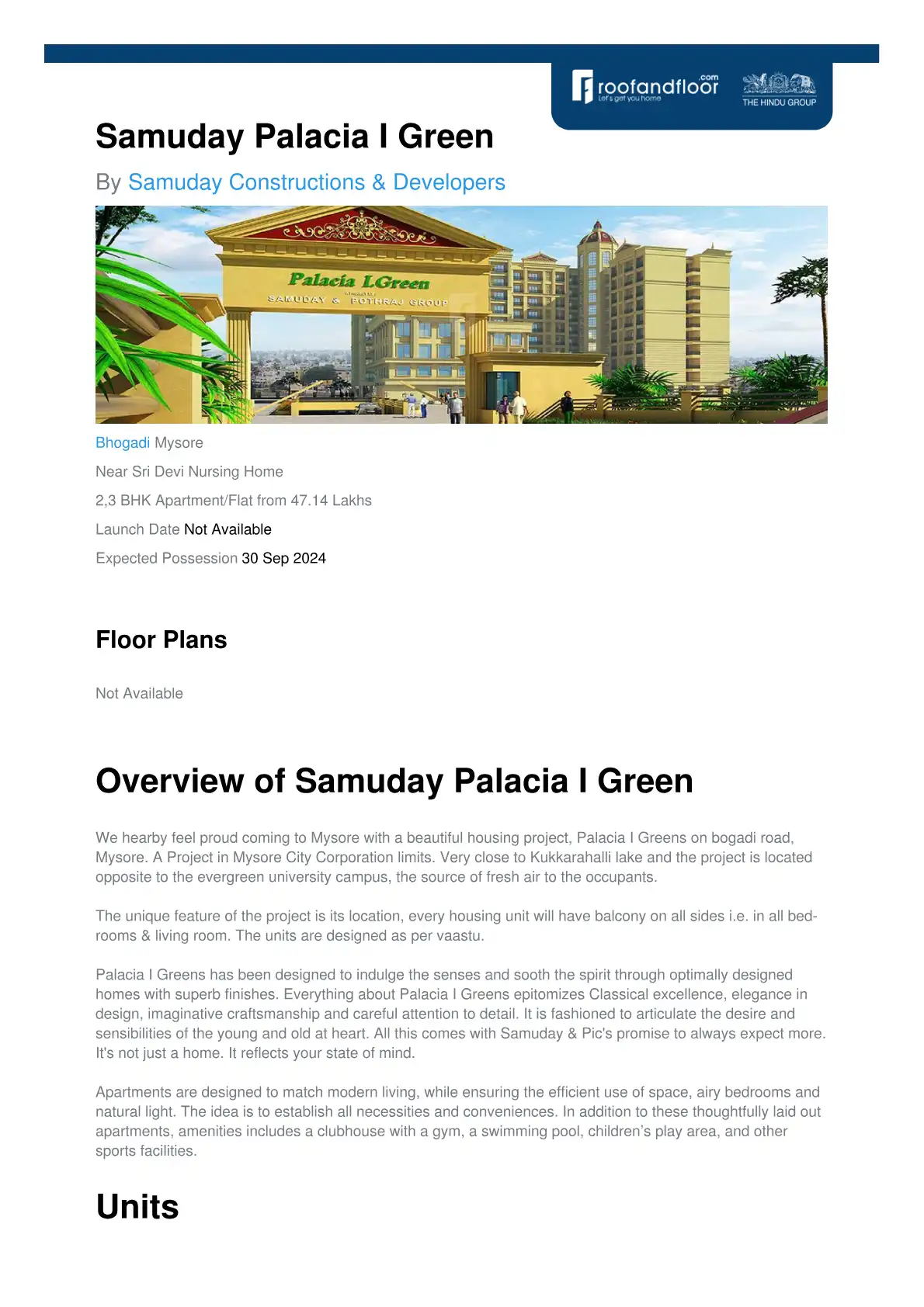 Palacia I Greens has been designed to indulge the senses and sooth the spirit through optimally designed homes with superb finishes. Everything about Palacia I Greens epitomizes Classical excellence, elegance in design, imaginative craftsmanship and ...