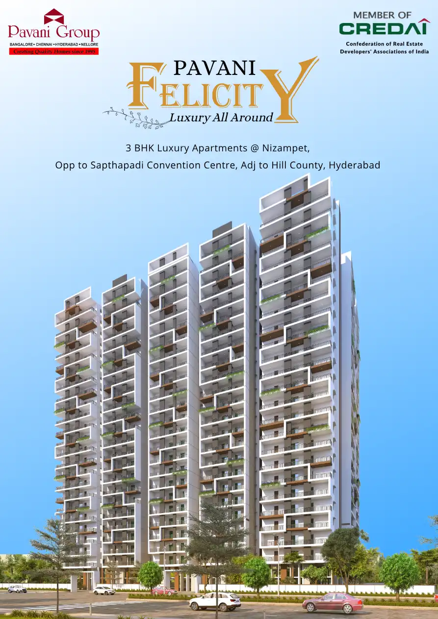 Nizampet is witnessing significant real estate development with several new projects. Notable upcoming residential projects include Shreerath Apartments by Unnati Buildtech, Pavani Felicity by Pavani Group, and Delight Heights by OM SREE BUILDERS, all offering modern 2BHK and 3BHK apartments with contemporary amenities. Other projects like Annes Fortunegreenhome Swan and Lakshmi S Harmony also contribute to the growing housing options in the area.