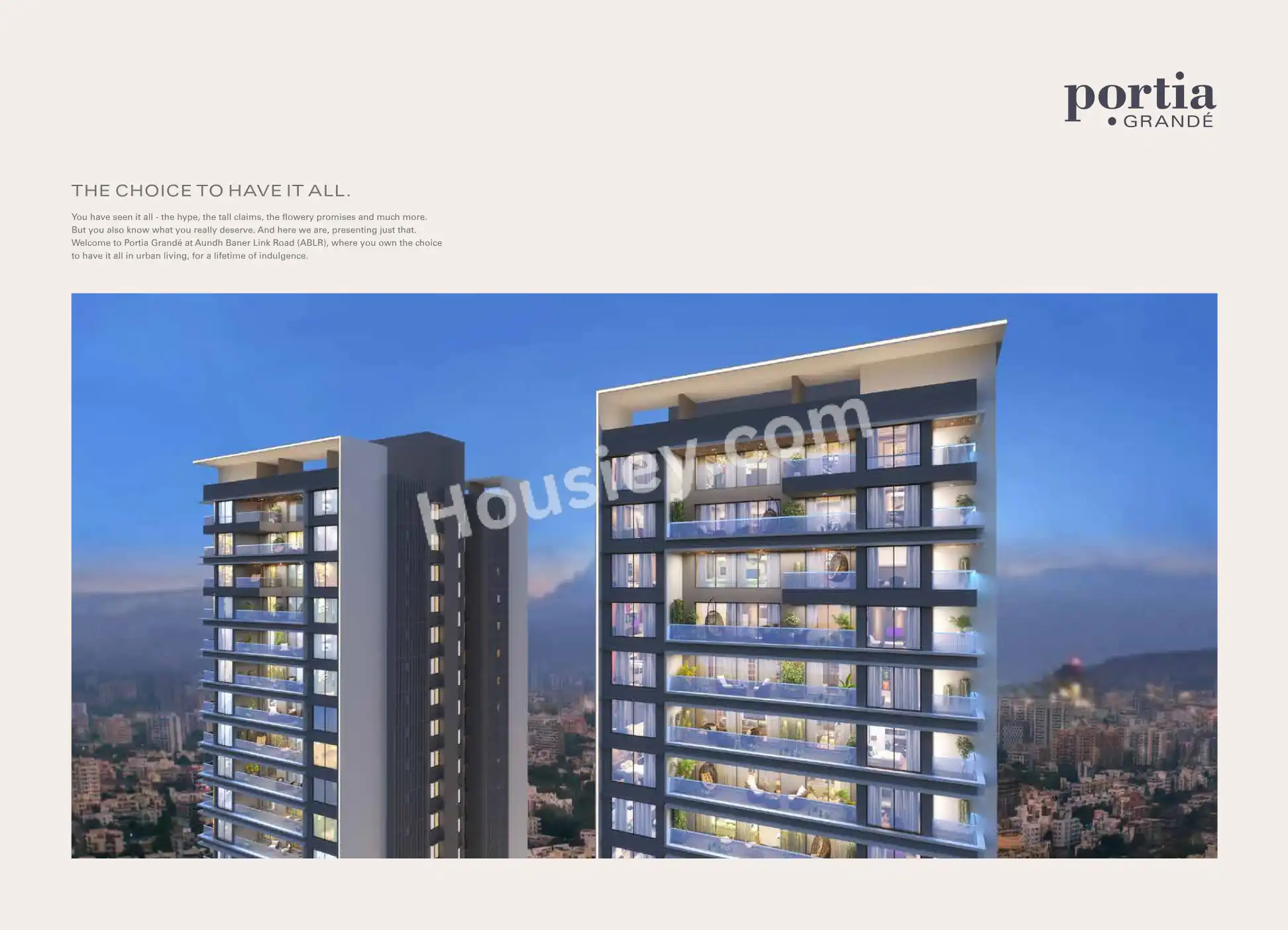 Welcome to Portia Grandé at Aundh Baner Link Road (ABLR), where you own the choice to have it all in urban living, for a lifetime of indulgence.