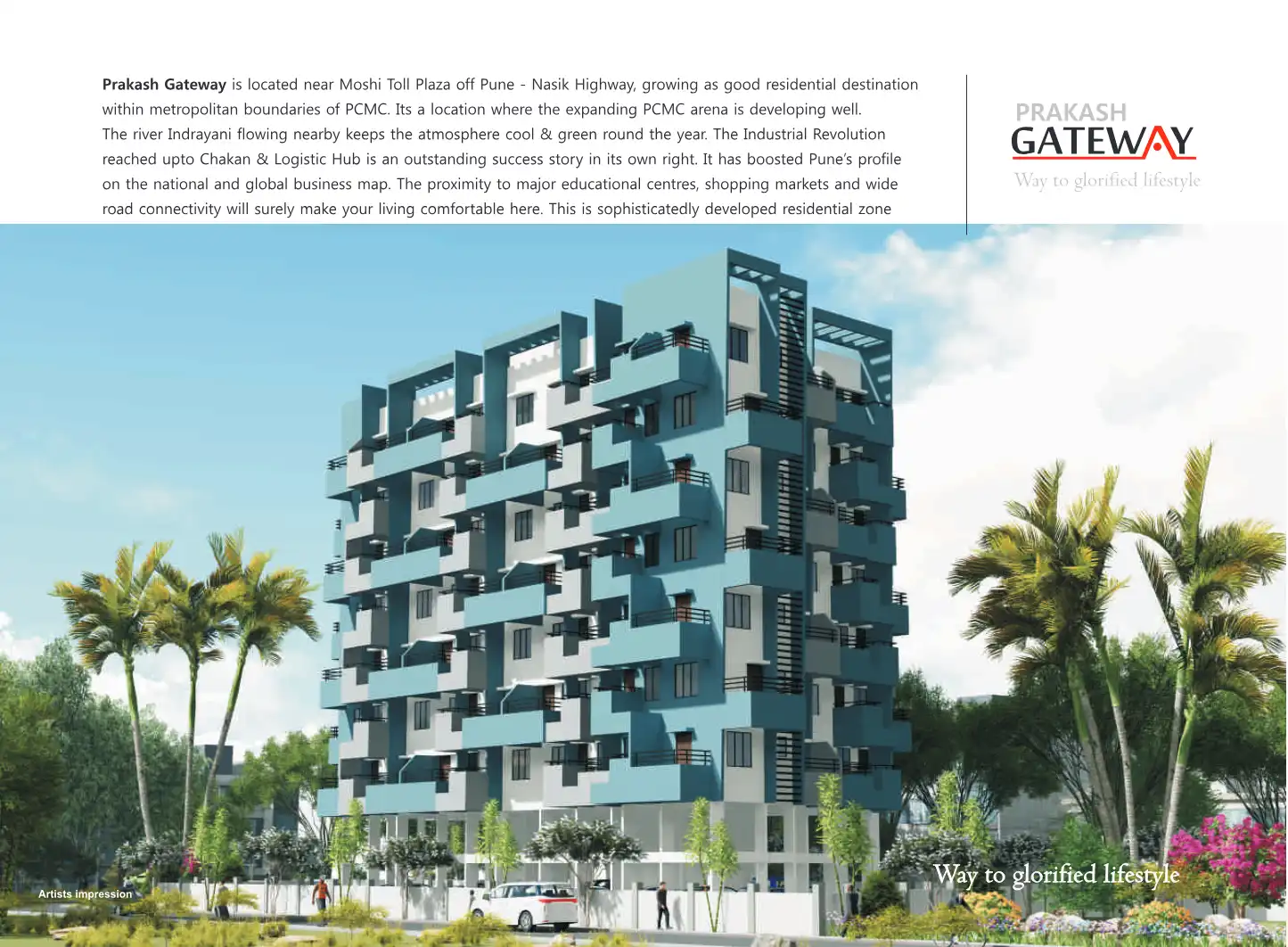 Prakash Gateway is located near Moshi Toll Plaza off Pune - Nasik Highway, growing as good residential destination within metropolitan boundaries of PCMC. Its a location where the expanding PCMC arena is developing well. The river Indrayani flowing n...