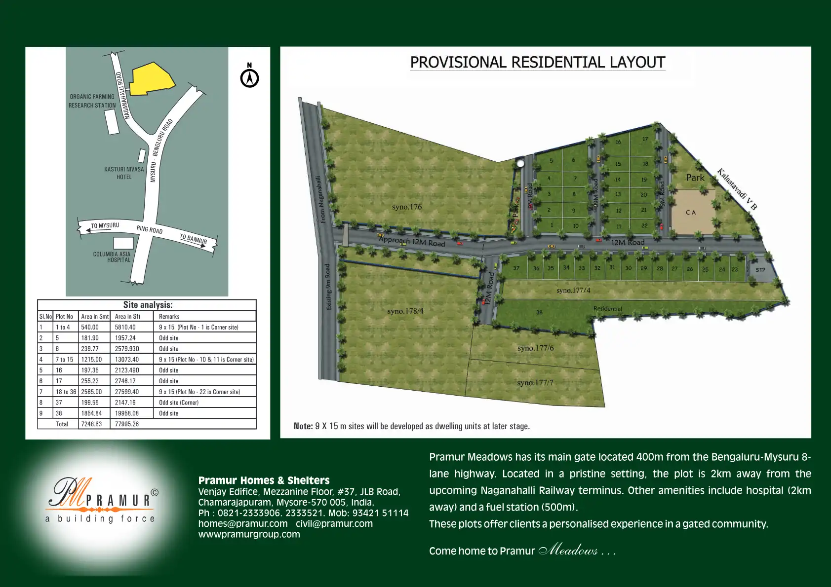 Pramur Meadows is designed for people who love space and would like to be amidst mother nature. With lots of greenery around, in addition to comfortable 9 x15m (30x50ft) plots, a few odd ones too have been planned to perfection. Well laid roads, serv...