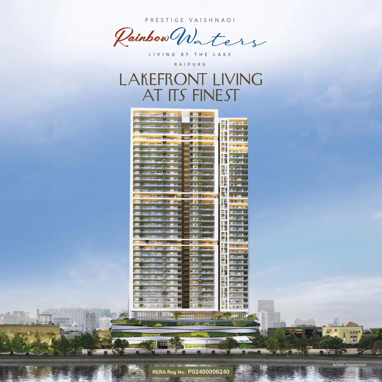 Discover exquisite luxury by the lakefront at Prestige Vaishnaoi Rainbow Waters. A brilliantly planned community of 150 four-bed and duplex high rise homes that offer sweeping unobstructed views of the picturesque Malkam Cheruvu, West Hyderabad's mos...