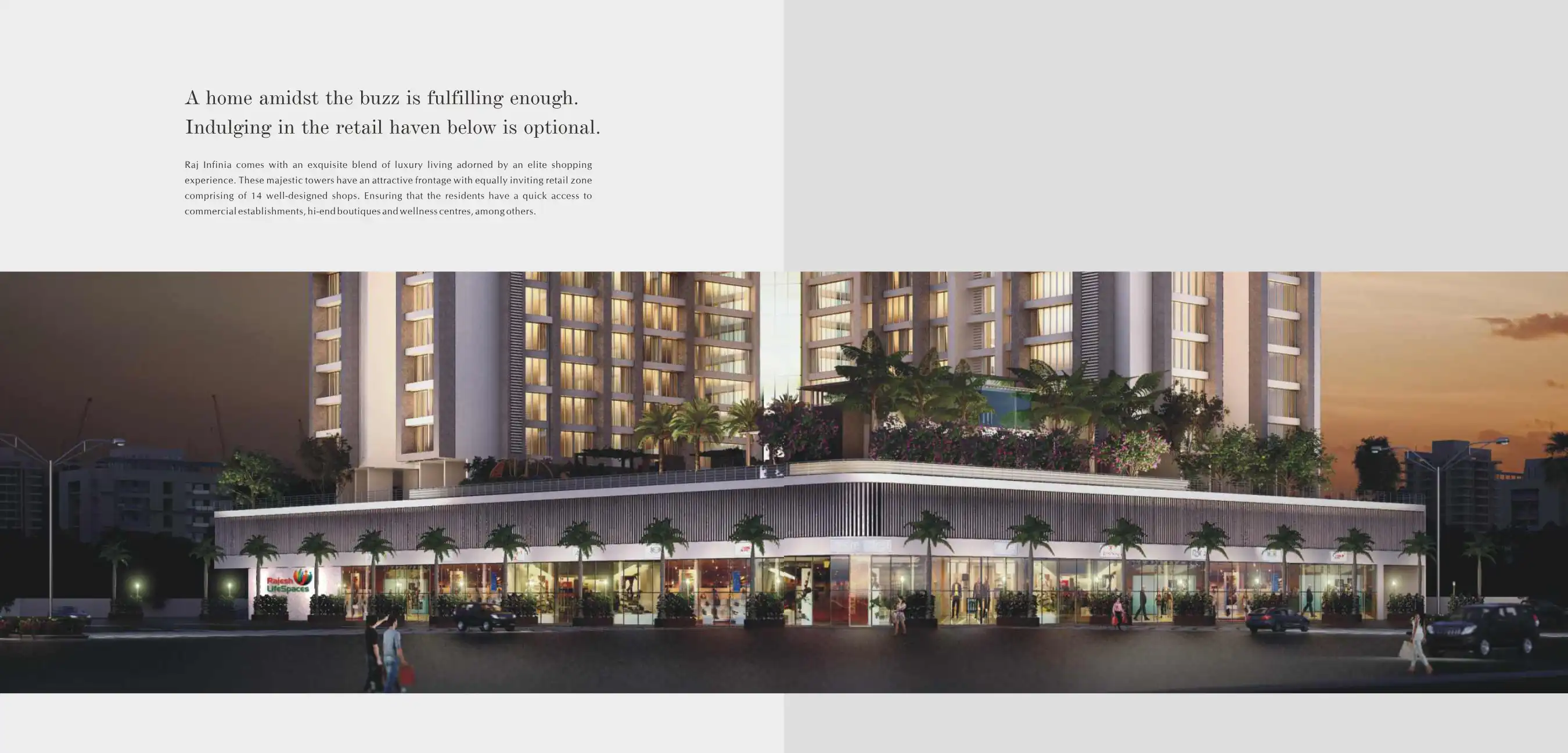 Raj Infinia comes with an exquisite blend of luxury living adorned by an elite shopping experience.