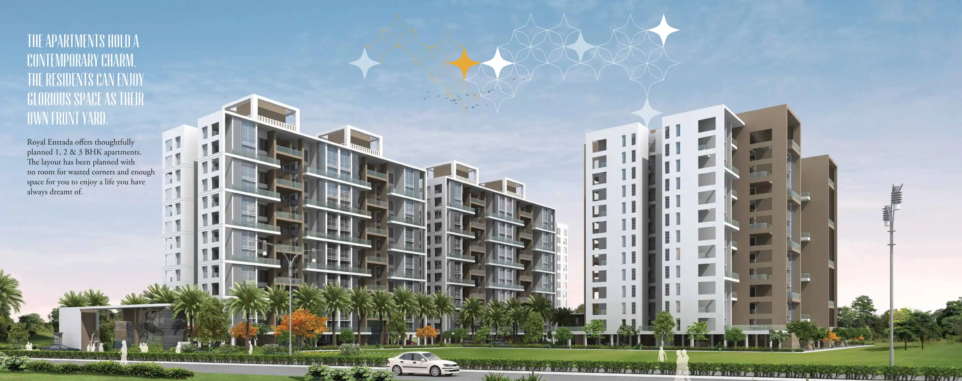 Royal Entrada offers thoughtfully planned 1, 2 & 3 BHK apartments. The layout has been planned with no room for wasted corners and enough space for you to enjoy a life you have always dreamt of.