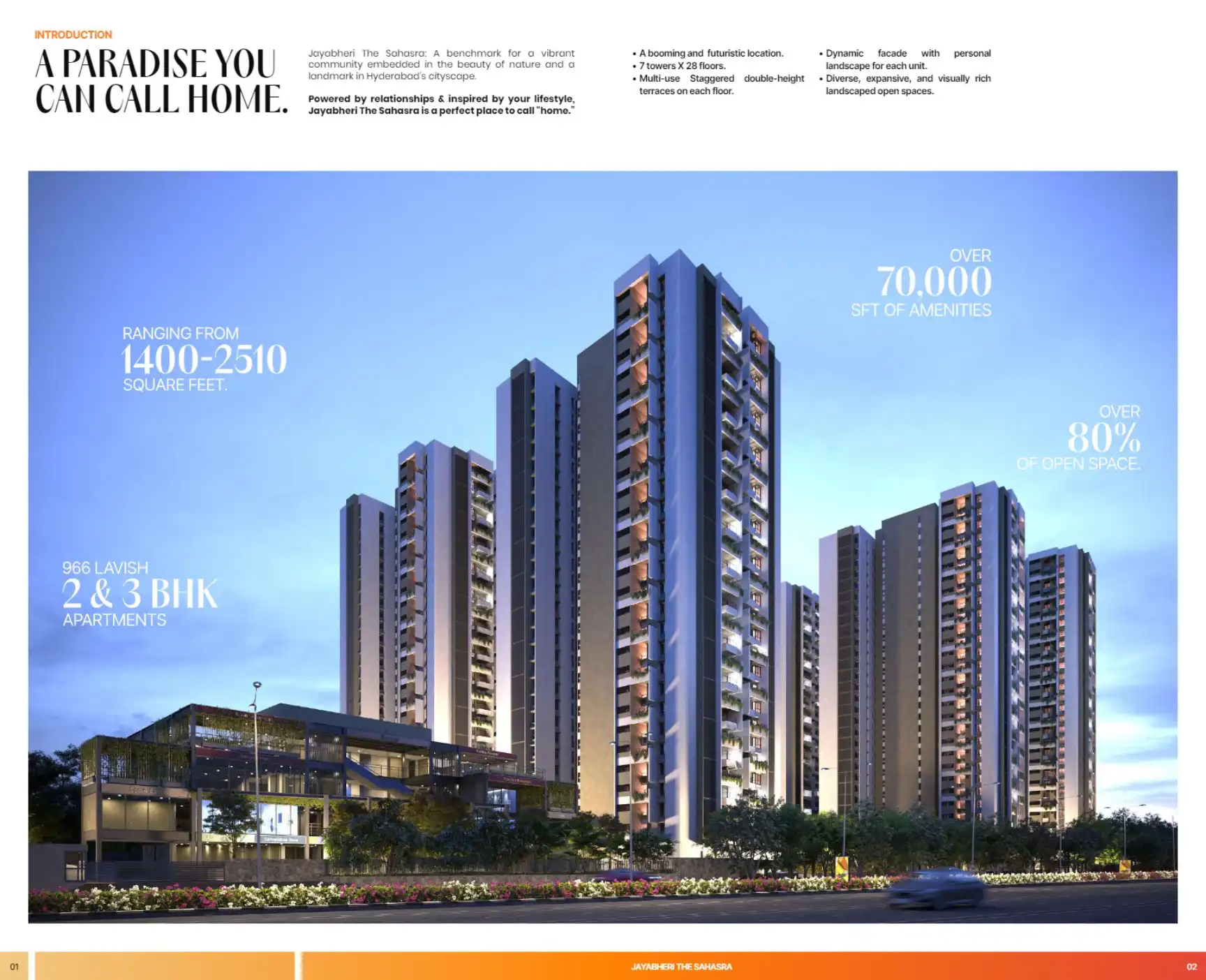 Jayabheri The Sahasra: A benchmark for a vibrant community embedded in the beauty of nature and a landmark in Hyderabad's cityscape. Powered by relationships & inspired by your lifestyle, Jayabheri The Sahasra is a perfect place to call "home."