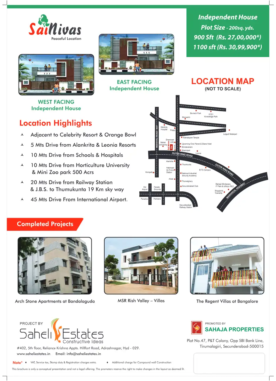 Sainivas with its proximity to the Outer Ring Road junction is going to be the most sought address in the near future as link road connects Ghatkesar & Keesara on one end and Medchal on the other end.