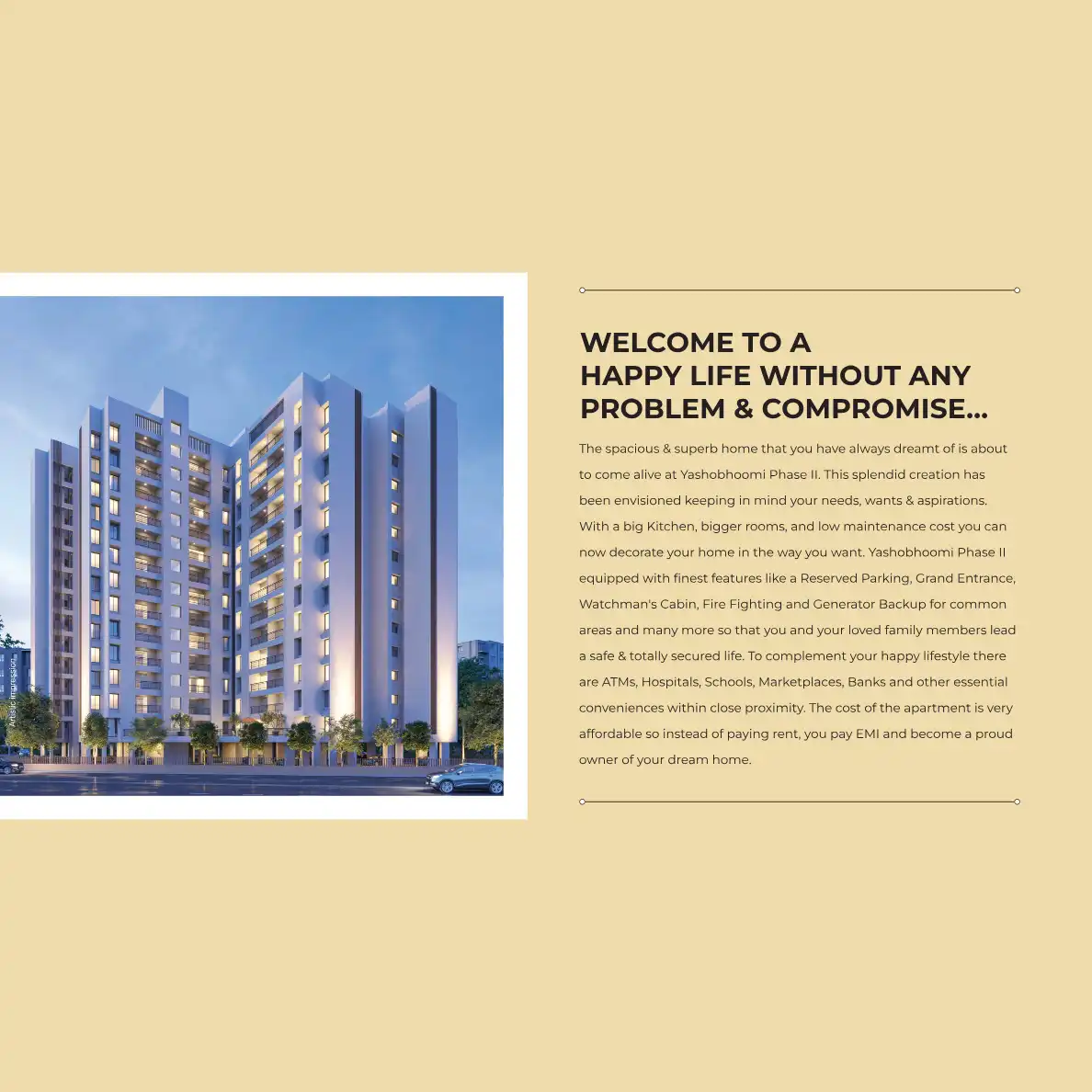 The spacious & superb home that you have always dreamt of is about to come alive at Yashobhoomi Phase II. This splendid creation has been envisioned keeping in mind your needs, wants & aspirations. With a big Kitchen, bigger rooms, and low maintenanc...