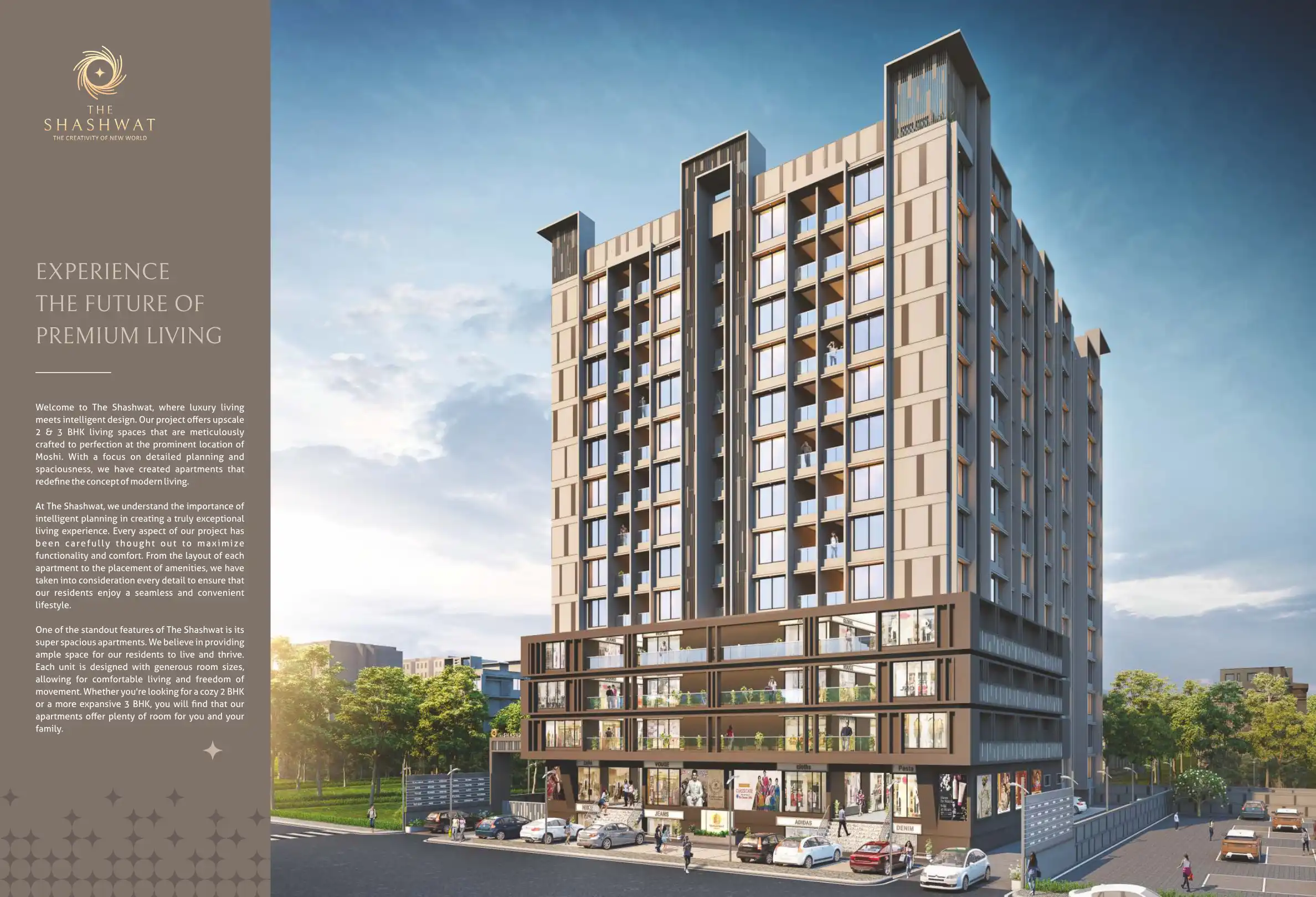 Upscale 2 & 3 BHK living spaces and shops in Moshi.