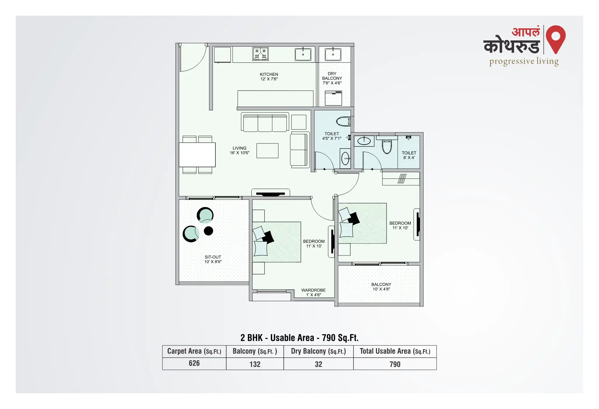 - 790 - 1175 sq.ft.
