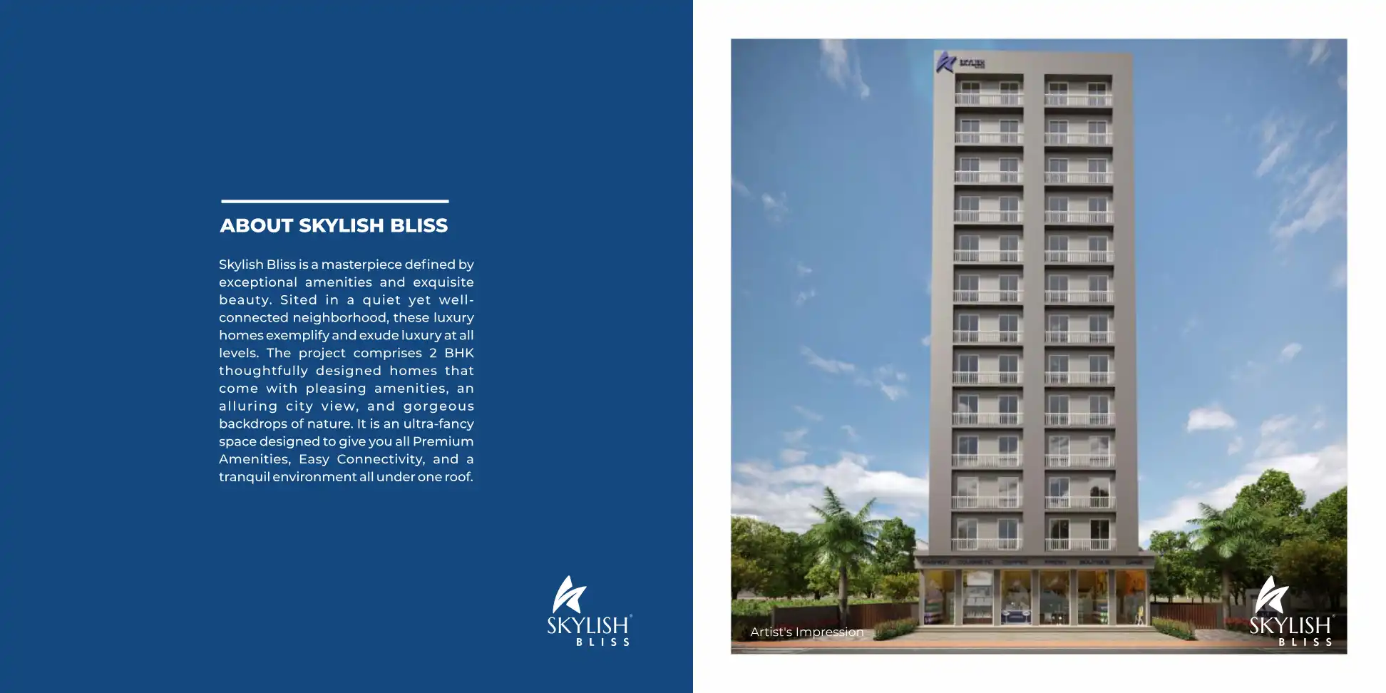 Skylish Bliss is a masterpiece defined by exceptional amenities and exquisite beauty. Sited in a quiet yet well-connected neighborhood, these luxury homes exemplify and exude luxury at all levels. The project comprises 2 BHK thoughtfully designed hom...