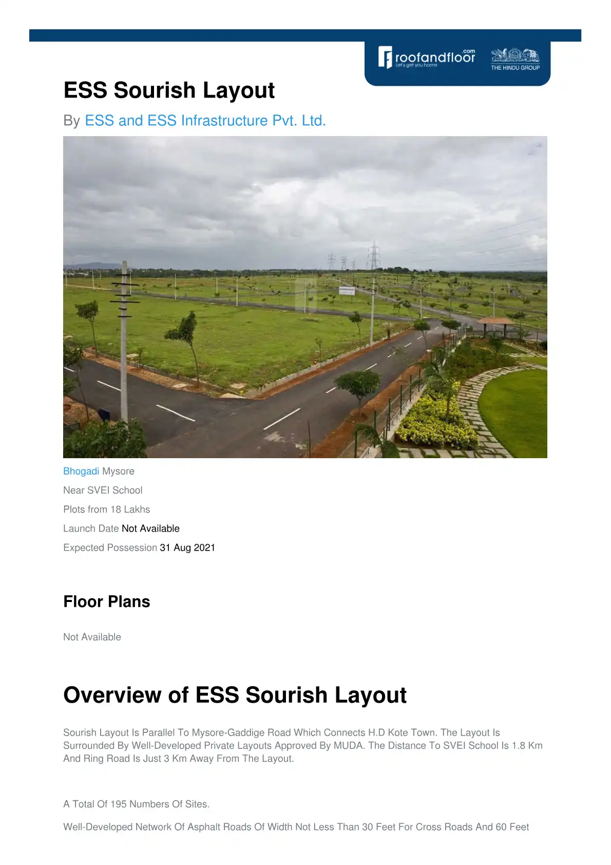 Sourish Layout Is Parallel To Mysore-Gaddige Road Which Connects H.D Kote Town. The Layout Is Surrounded By Well-Developed Private Layouts Approved By MUDA. The Distance To SVEI School Is 1.8 Km And Ring Road Is Just 3 Km Away From The Layout.