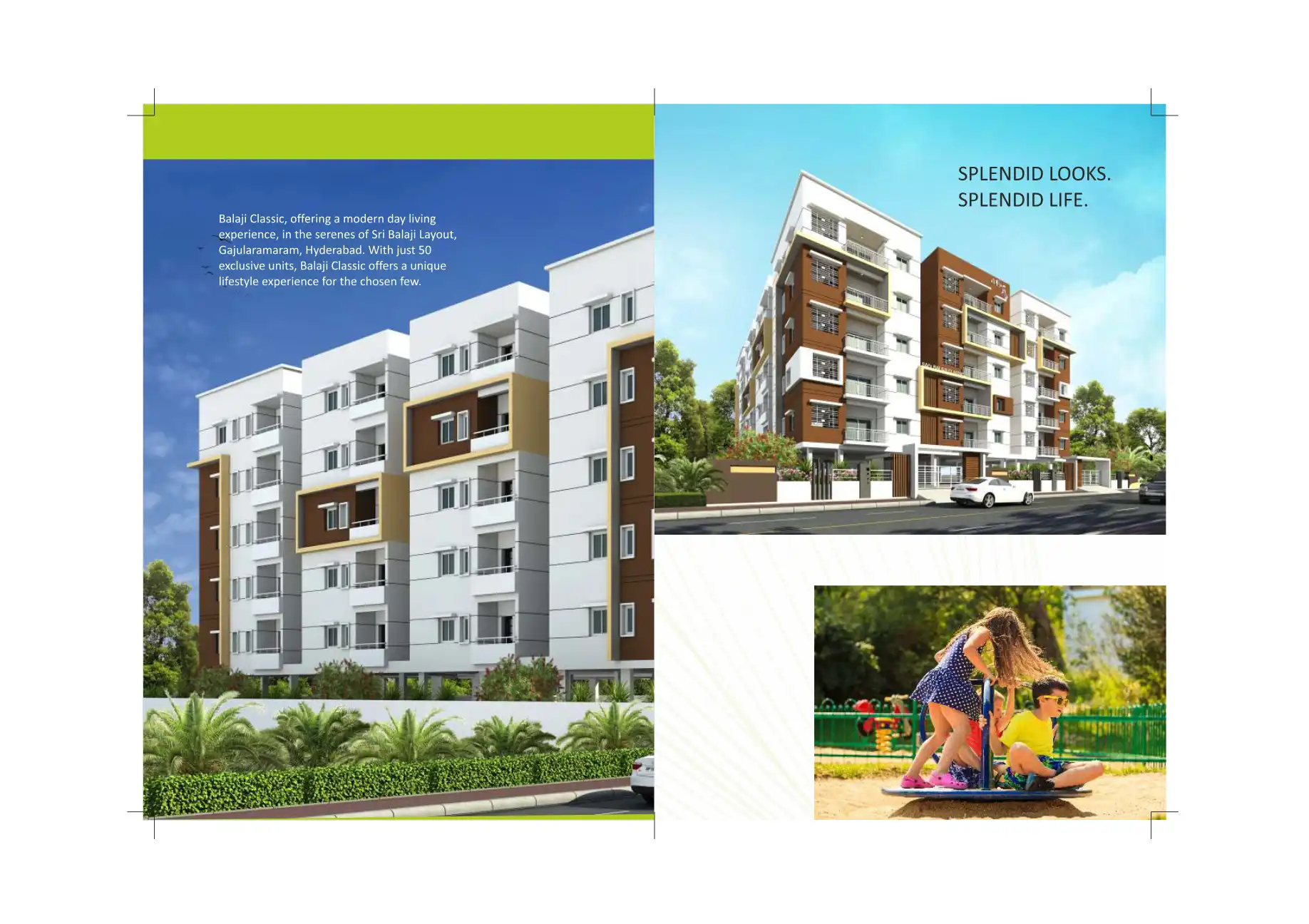 Balaji Classic, offering a modern day living experience, in the serenes of Sri Balaji Layout, Gajularamaram, Hyderabad. With just 50 exclusive units, Balaji Classic offers a unique lifestyle experience for the chosen few.
