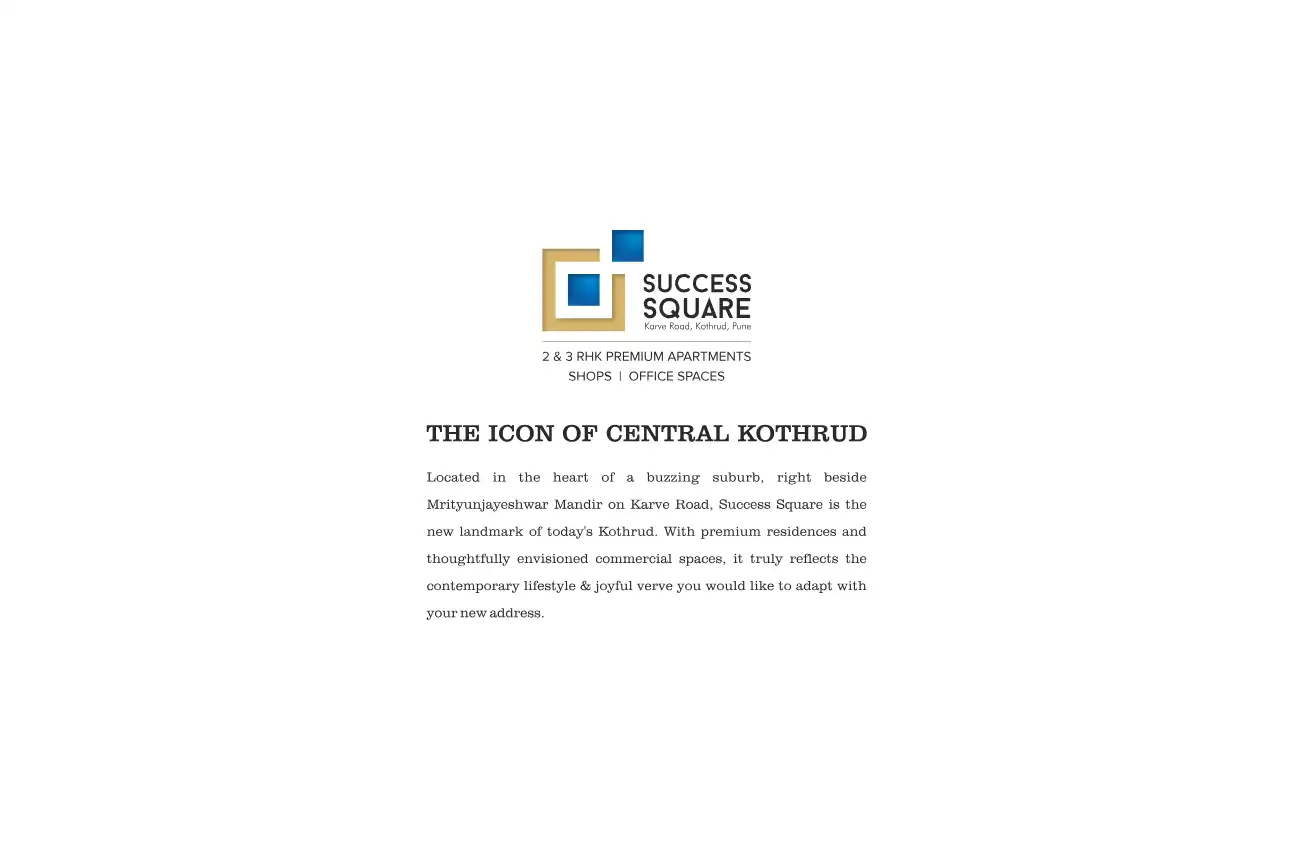 Located in the heart of a buzzing suburb, right beside Mrityunjayeshwar Mandir on Karve Road, Success Square is the new landmark of today's Kothrud. With premium residences and thoughtfully envisioned commercial spaces, it truly reflects the contempo...