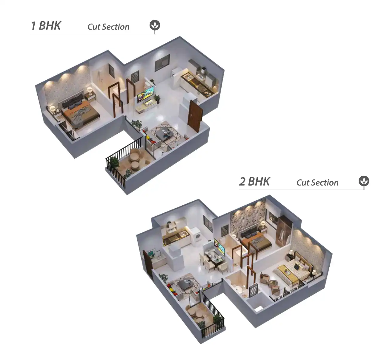 Uruli-Devachi features several notable residential projects. Alacrity Developers' "Mountain Raga" offers 2 & 3 BHK apartments with amenities like swimming and gym. Shraddha Construction's "Dev Residency Phase 1" provides 1 & 2 BHK homes, and "Anmol" by ANMOL NAYANTARA is an upcoming project with modern facilities.