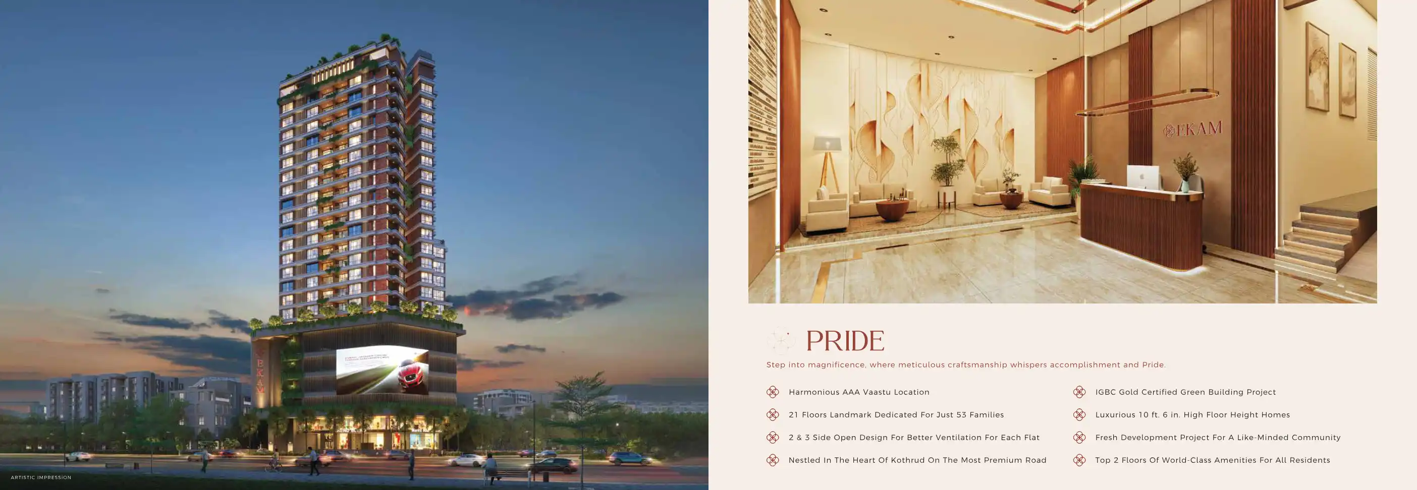Ekam emerges as the one place that has it all. It stands as a beacon of a lifestyle that perfectly weaves Pride, Togetherness, Comfort and Trust. It is a harmonious blend of modern amenities and traditional values, designed to offer a comprehensive a...