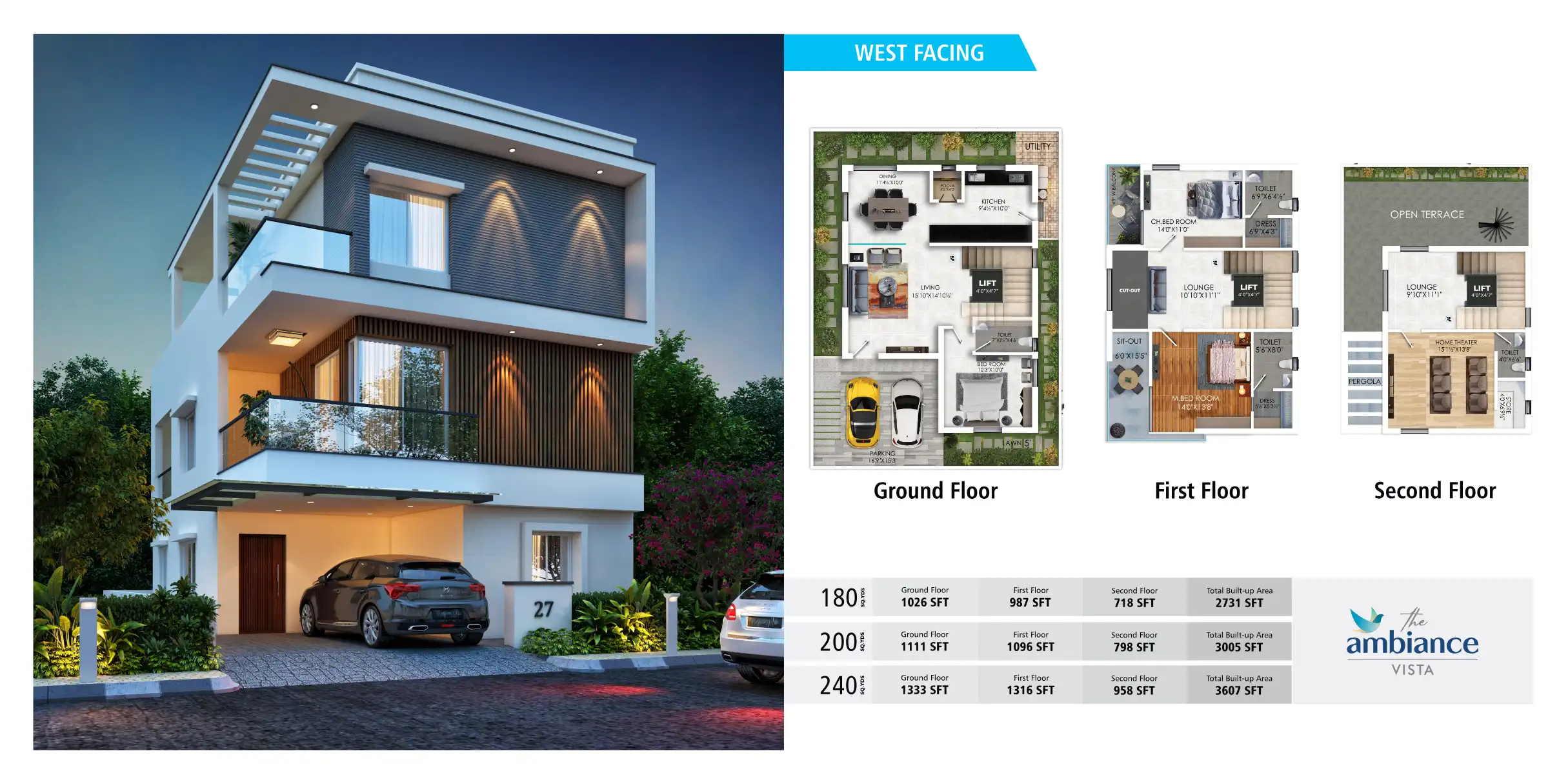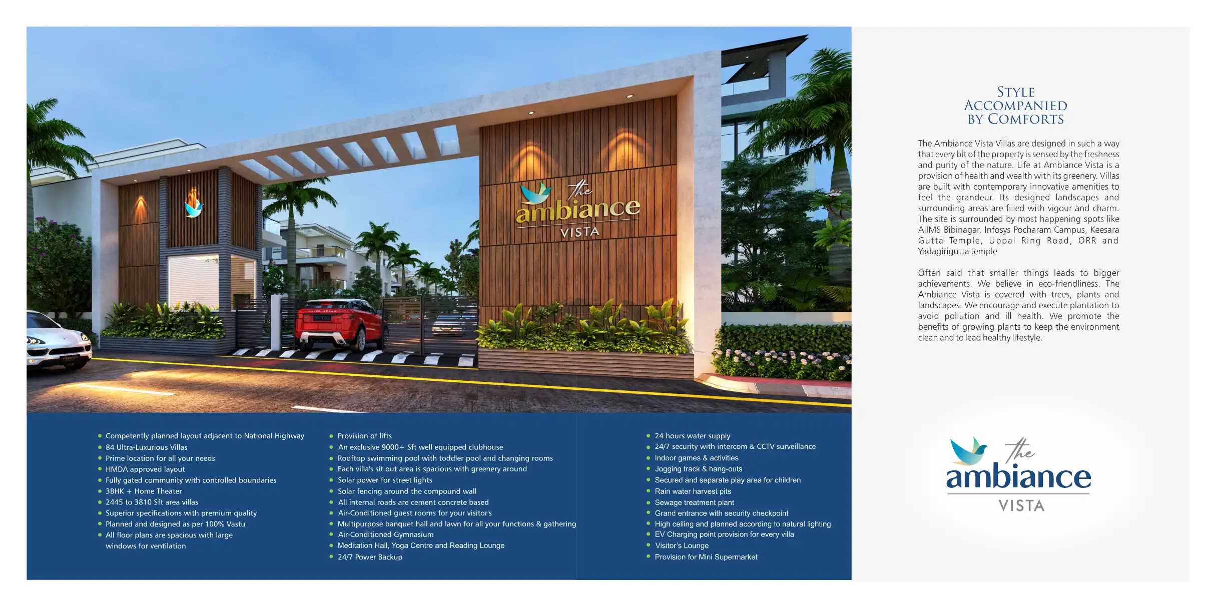 The Ambiance Vista Villas are designed in such a way that every bit of the property is sensed by the freshness and purity of the nature. Life at Ambiance Vista is a provision of health and wealth with its greenery.