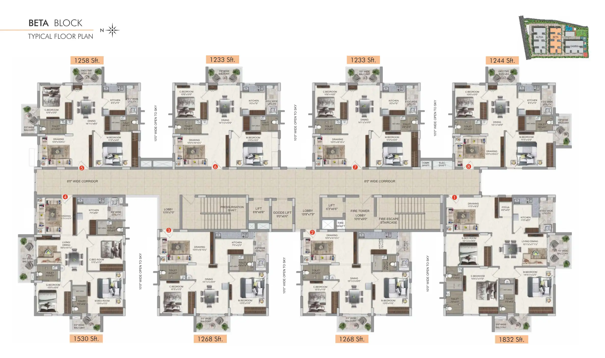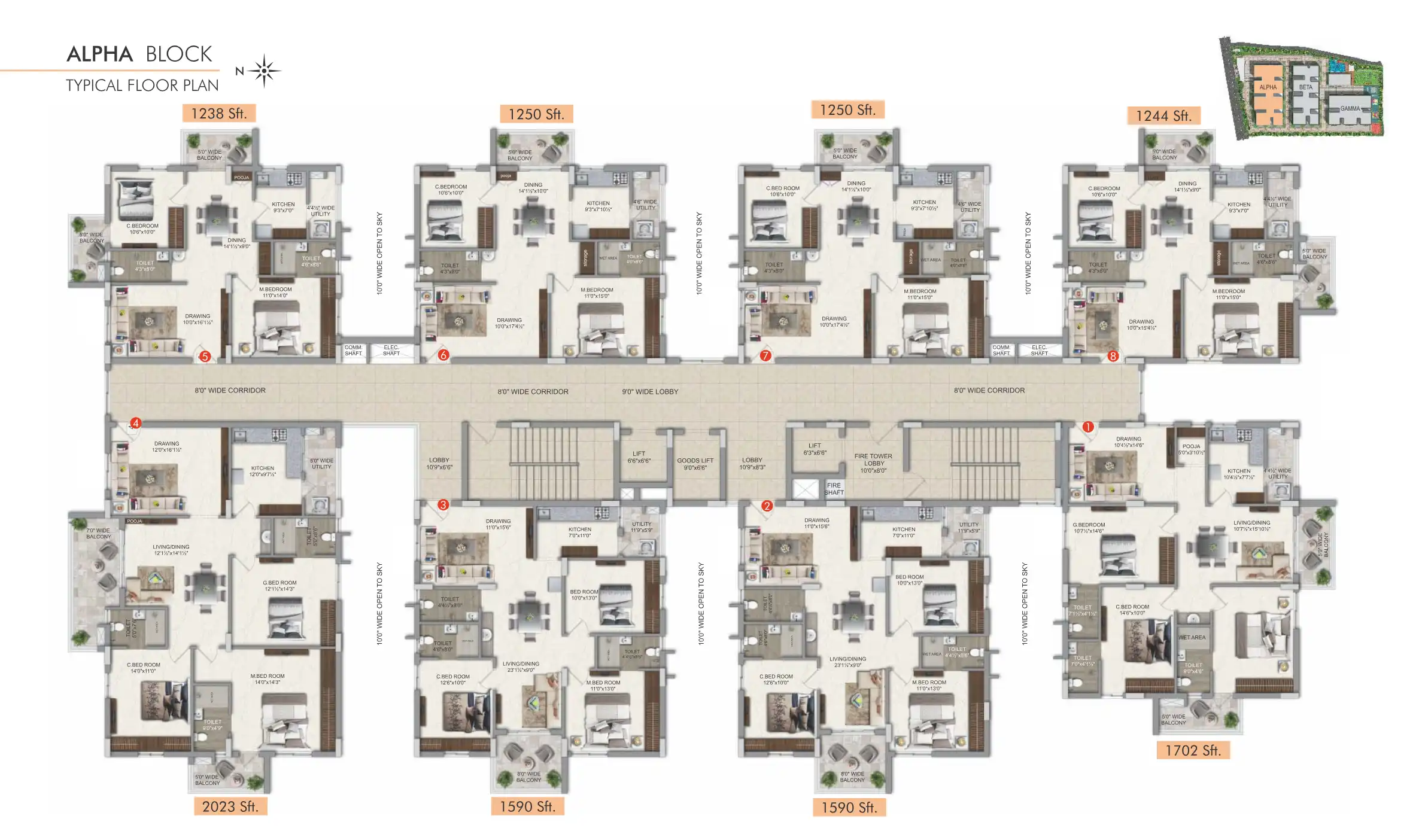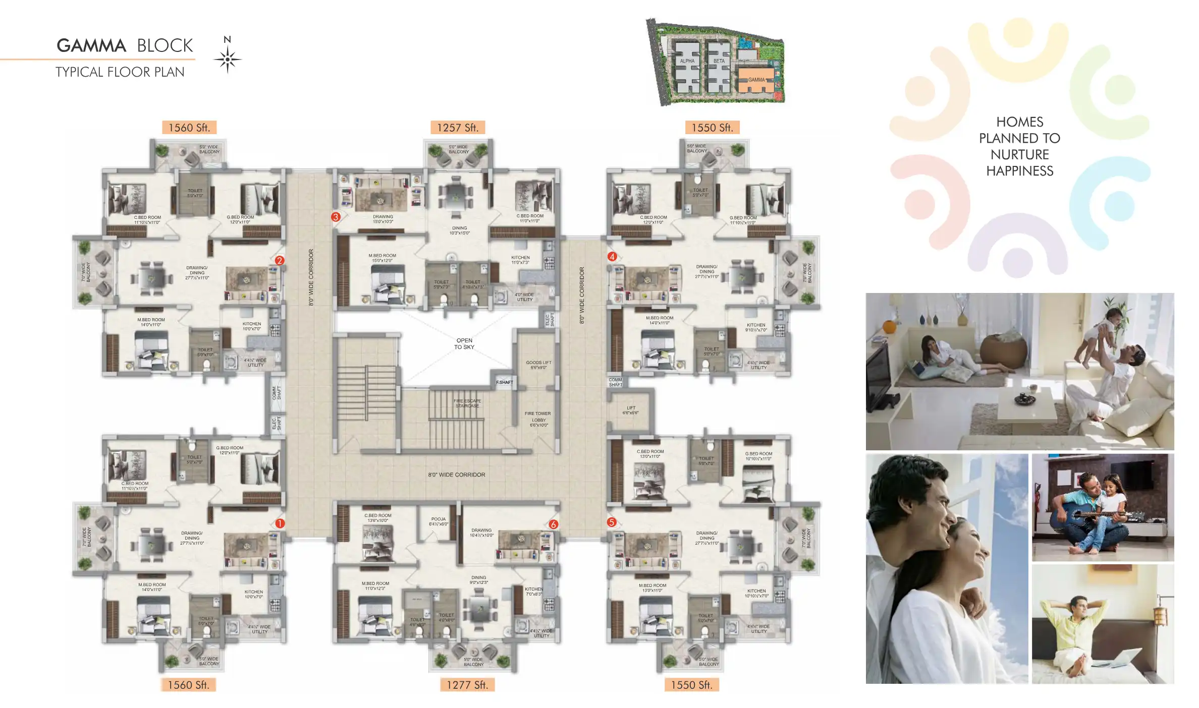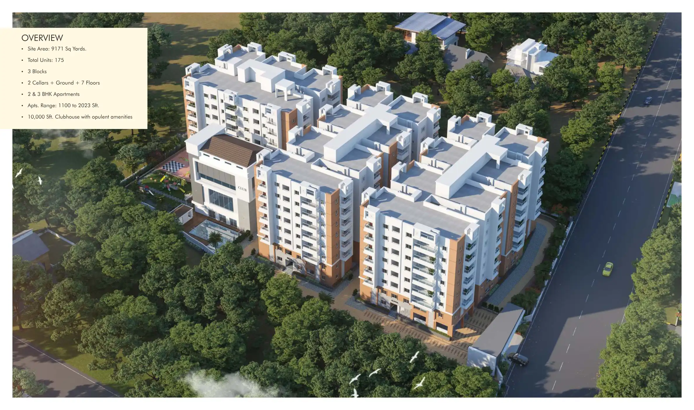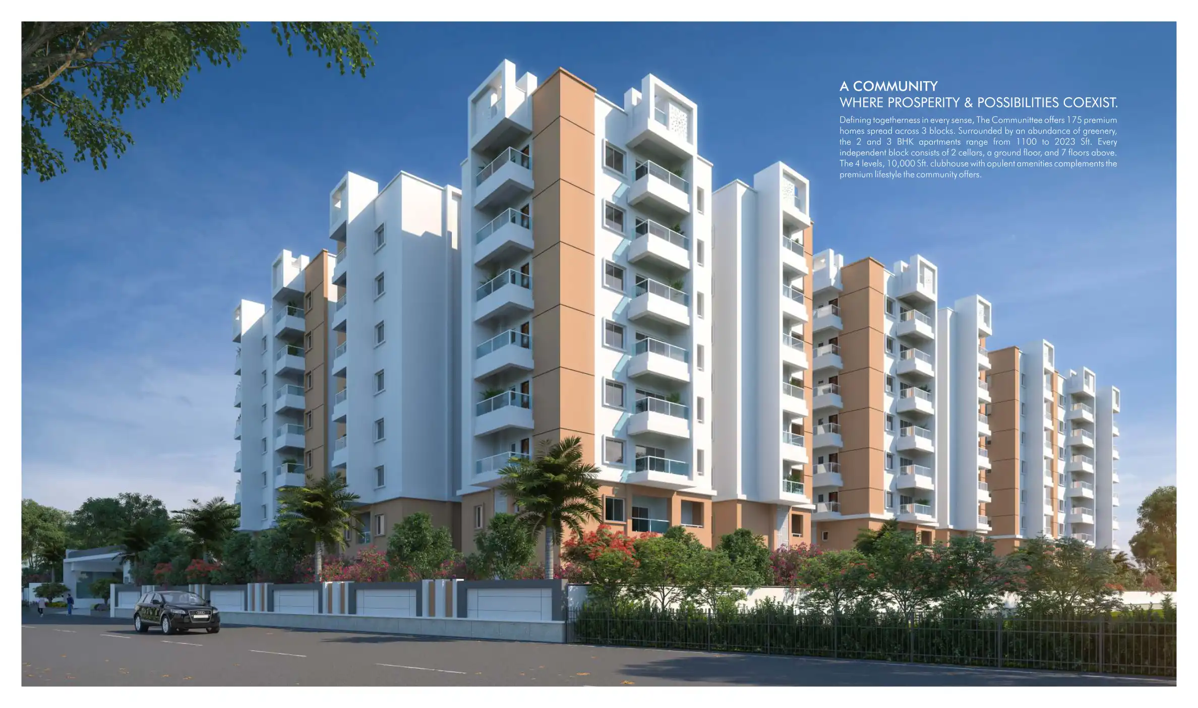 The Communittee offers 175 premium homes spread across 3 blocks. The 2 and 3 BHK apartments range from 1100 to 2023 Sft.
