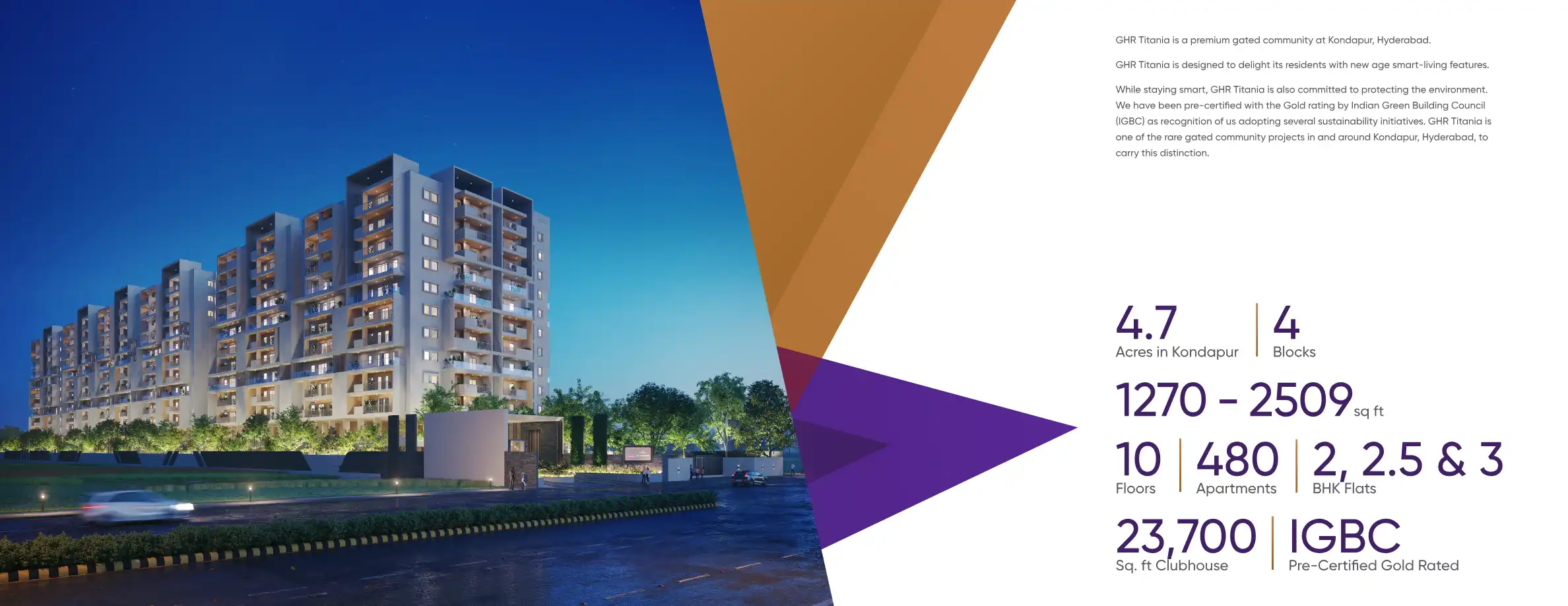 GHR Titania is a premium gated community at Kondapur, Hyderabad. GHR Titania is designed to delight its residents with new age smart-living features.
