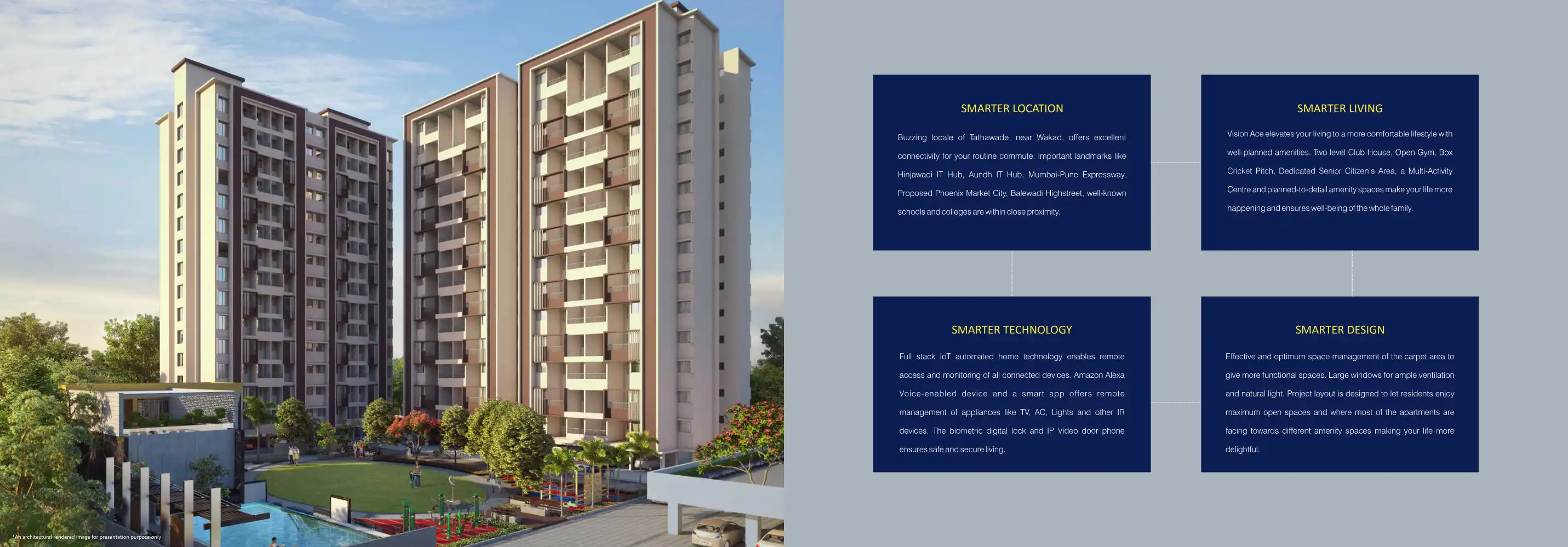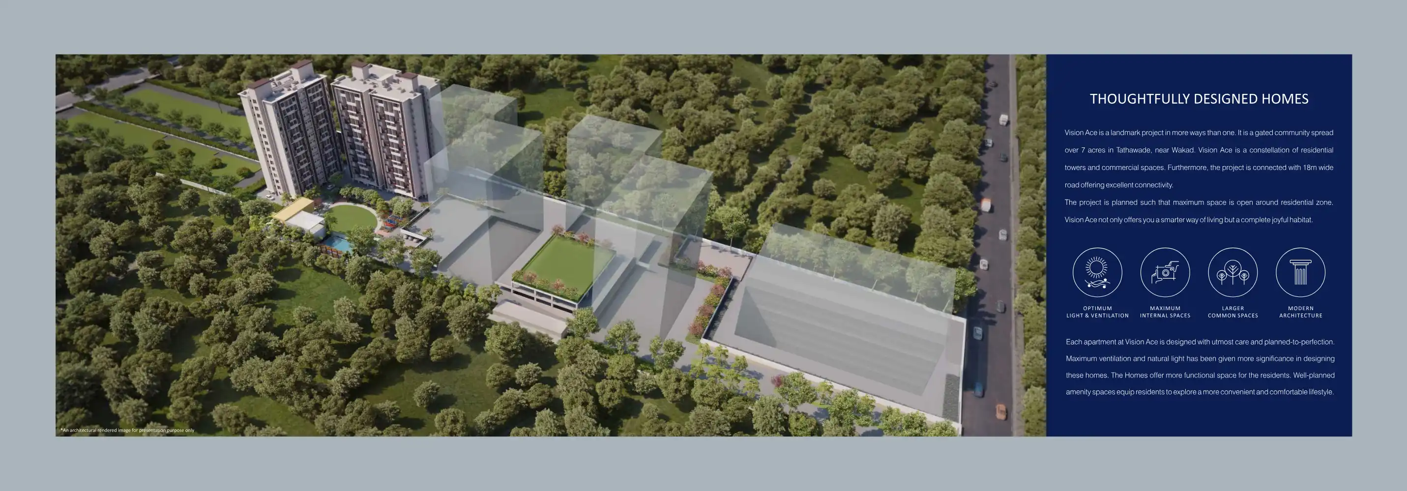 Vision Ace elevates your living to a more comfortable lifestyle with well-planned amenities. Vision Ace is a landmark project in more ways than one. It is a gated community spread over 7 acres in Tathawade, near Wakad. Vision Ace is a constellation o...