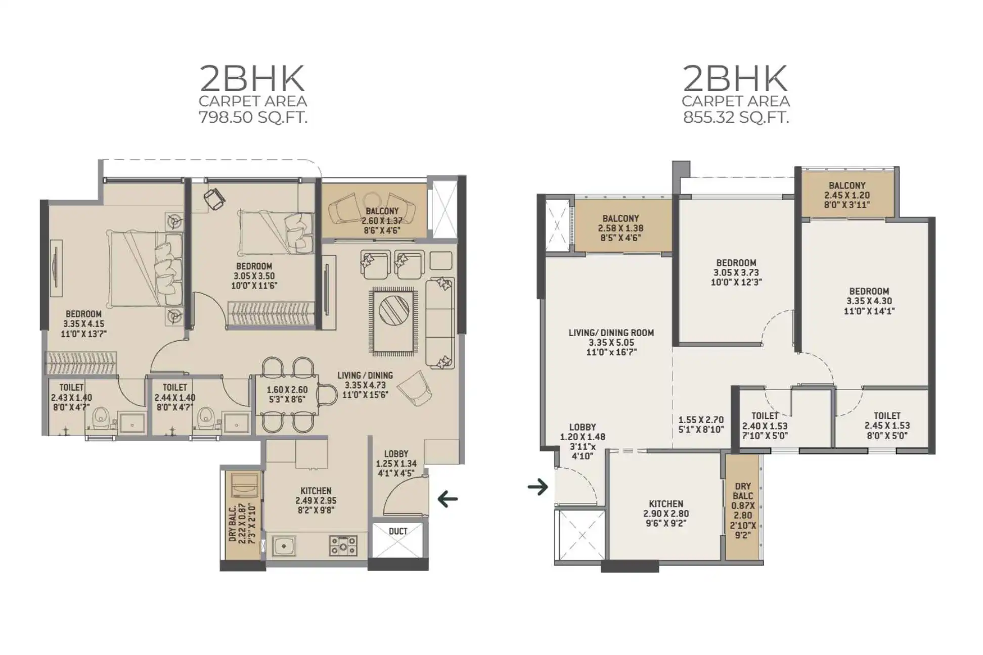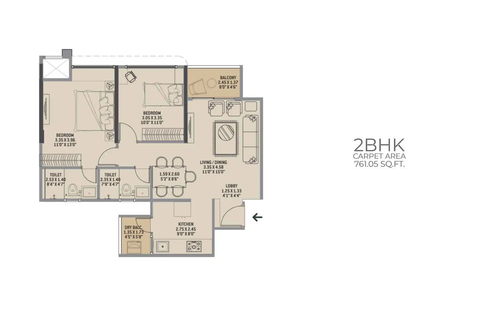 761.05 - 1744.2 sq.ft.