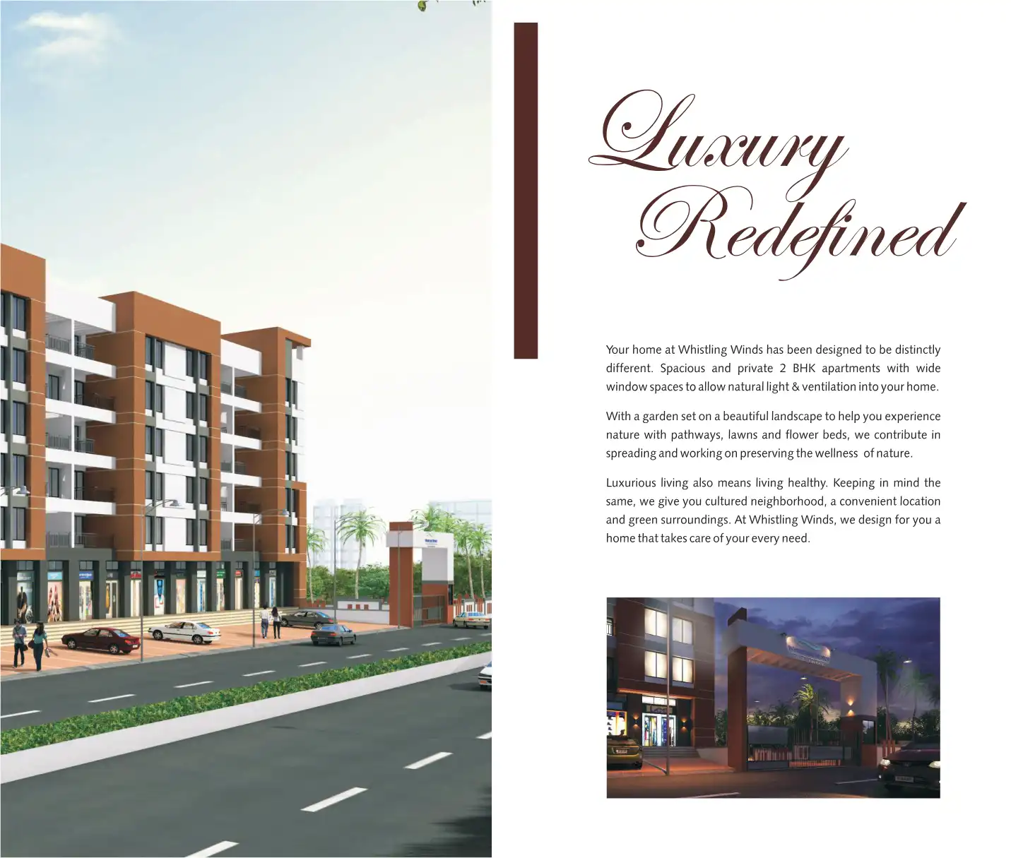 Your home at Whistling Winds has been designed to be distinctly different. Spacious and private 2 BHK apartments with wide window spaces to allow natural light & ventilation into your home.